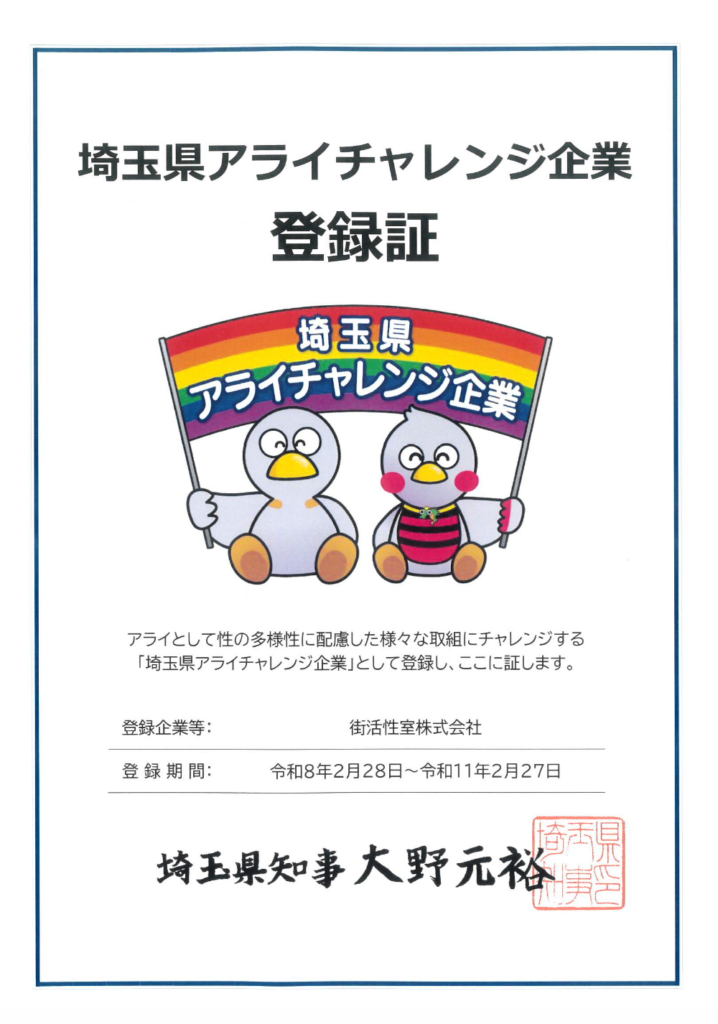 この度、埼玉県アライチャレンジ企業に登録されました。